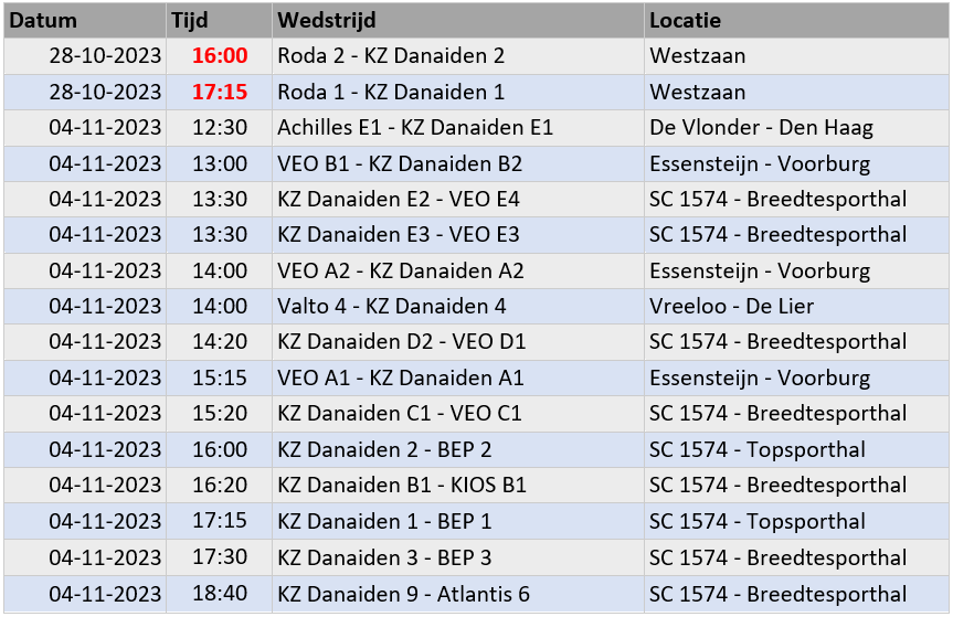 Ook in het schema voor de oefenwedstrijden zijn enkele wijzigingen. Dit betreft de starttijden van S1 en S2 op 28 oktober. Deze waren eerder nog niet definitief.