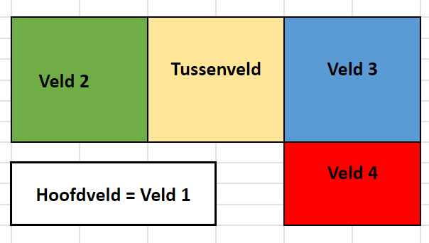 De veldindeling is niet veranderd maar voor de zekerheid nog even waar welk veld ligt.